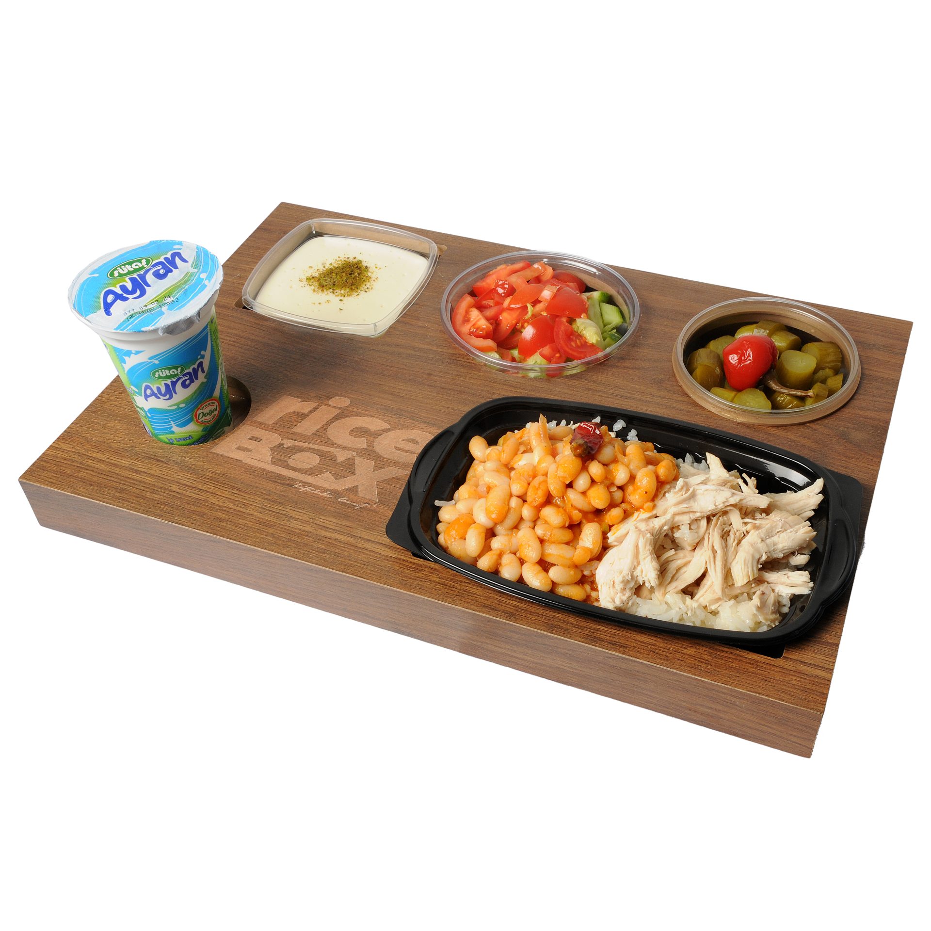 Tavuk-Kuru Pilav, Turşu, Salata, Alaçatı Muhallebisi, Ayran